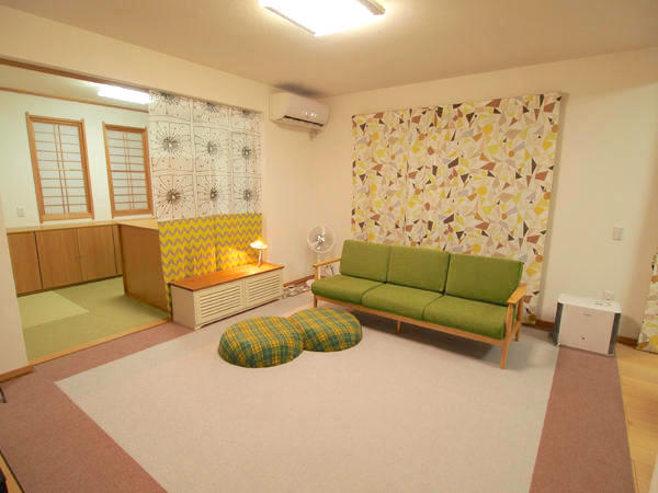 みんなでゴロゴロできるよう、広〜くタイルカーペットを敷き詰めました。