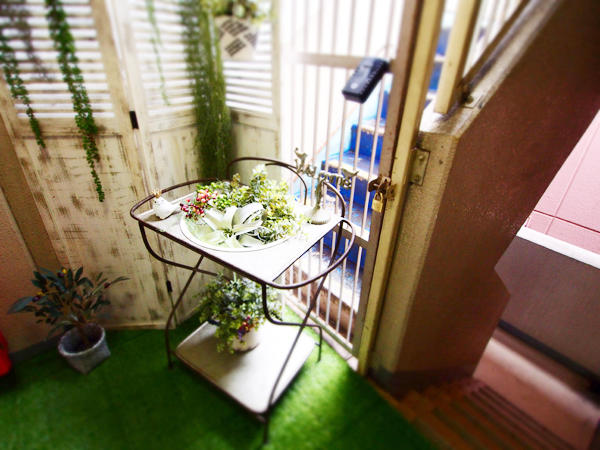 隣の建物の目隠しには、おしゃれなパーテーションと癒しの緑。