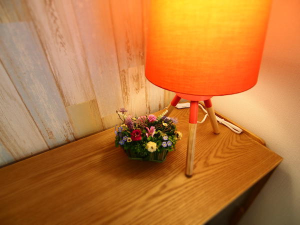 オレンジのスタンドライトが素敵なアクセントになっていますね✨