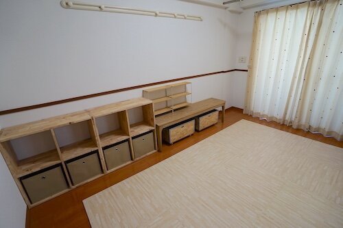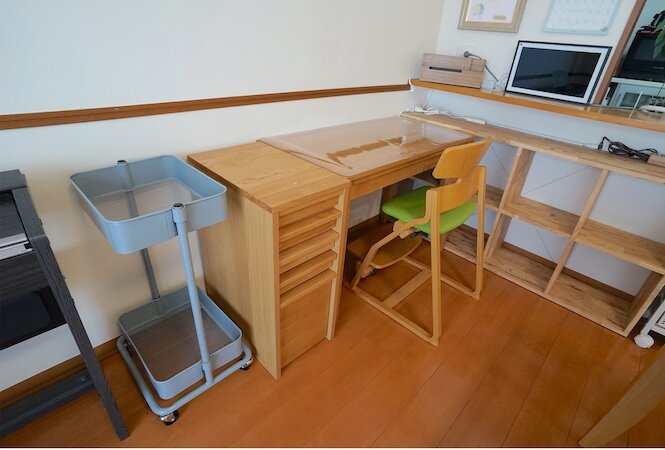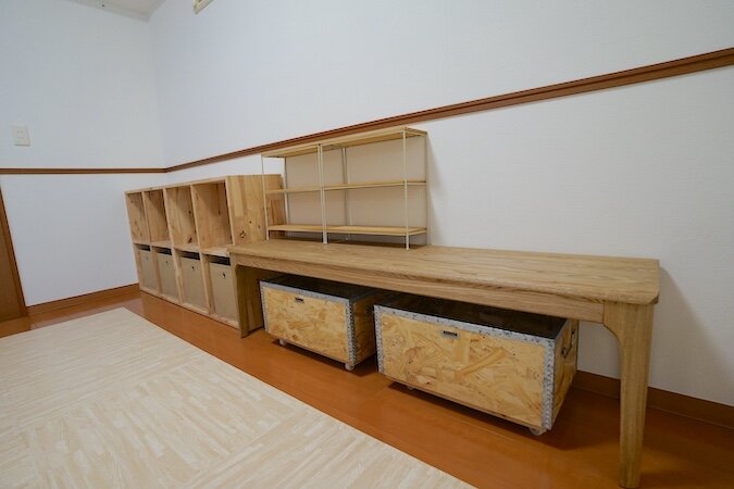 デスクも必要だし、学校の物の収納も必要だし・・・と、お困りごとが重なる日々。
