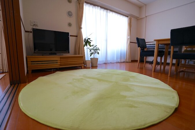 今度は"ライトグリーンのラグ"が、団欒スペースの主役です。