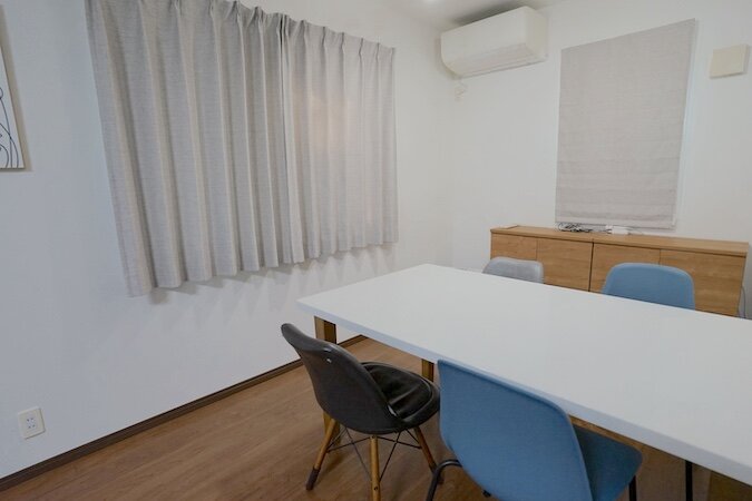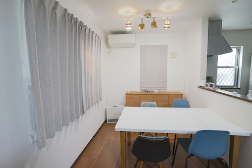 もともとお持ちのダイニングテーブルと椅子をいかし、カーテンのみシンプルなデザインに変更✏︎