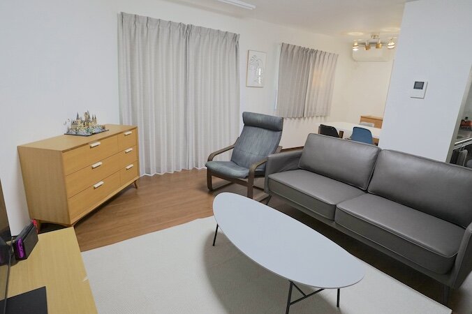 今回の改造では、もともとのレイアウトからソファとテレビの位置を90度移動させました!