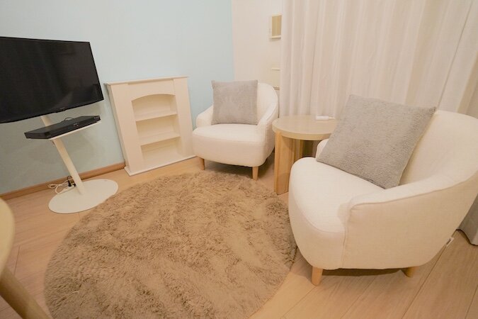 怪我のリスクを減らすために角のある物を極力減らし、丸みのある家具をセレクト☑︎