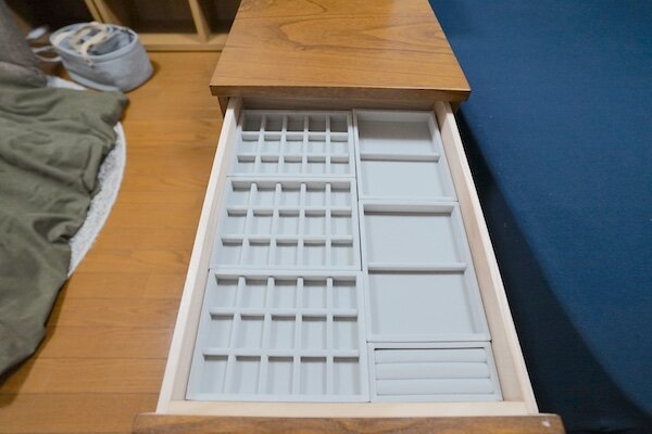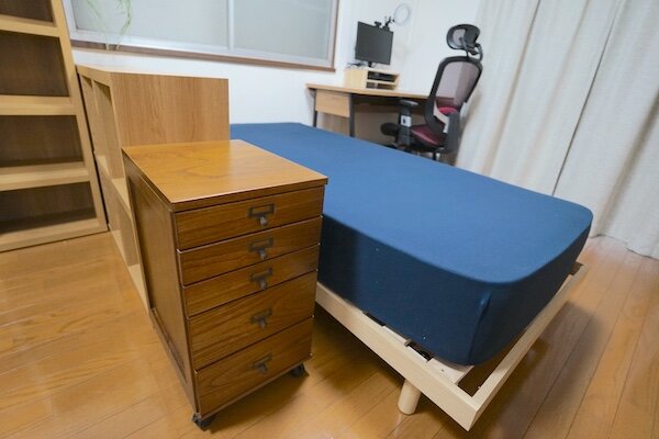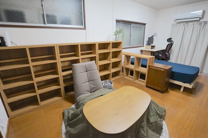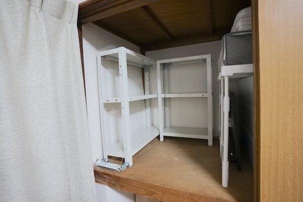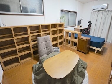 今回の改造では新たにデスクスペースを設置し、押し入れは本来の収納にシフト↔︎