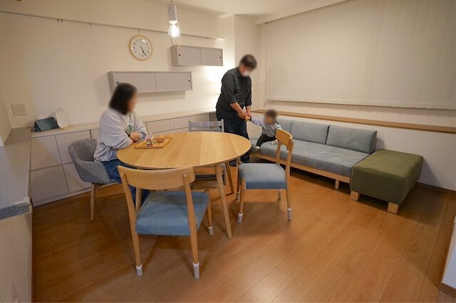 ソファやテーブルの寛ぐ場所が広がって以前よりゆったり暮らせるような気がしています。